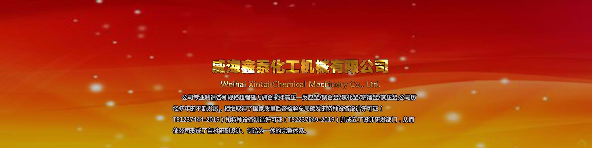 威海鑫泰化工機械有限公司位于山東威海,本公司專業(yè)制造銷售各種規(guī)格高壓反應(yīng)釜、磁力反應(yīng)釜、不銹鋼高壓釜、不銹鋼反應(yīng)釜、強磁力偶合攪拌反應(yīng)釜及與其配套的壓力罐、冷凝器、塔器等,其結(jié)構(gòu)形式、高中低壓、加熱方式、攪拌形式、轉(zhuǎn)速變化均可按標(biāo)準或按用戶工藝要求進行選配定制,廠家直銷,產(chǎn)品價格低,型號全。